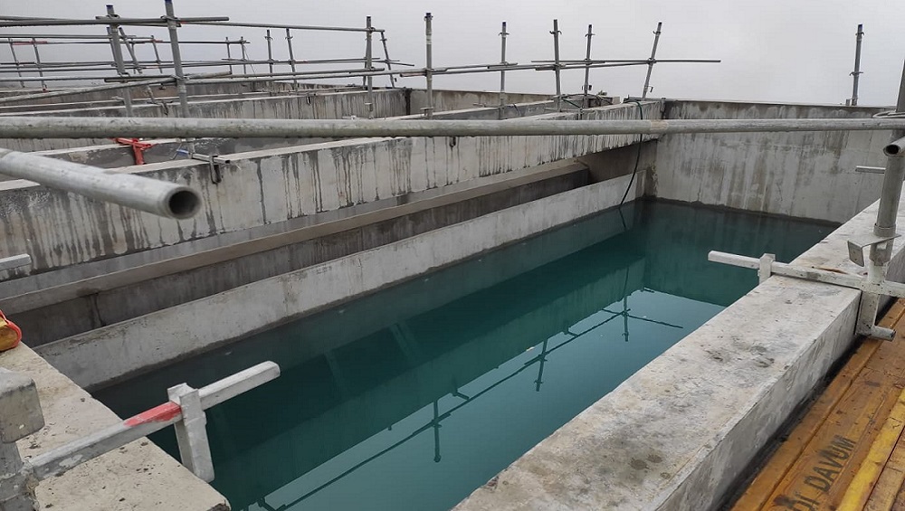 Le site accueille également deux réservoirs installés sur une superficie de 1100m2 chacun et d’une capacité de 5 000 m3 chacun (coût de 4,2 M€) qui ont déjà réceptionnés et qui permettront d’assurer le lissage de la production d’eau potable par l’usine.