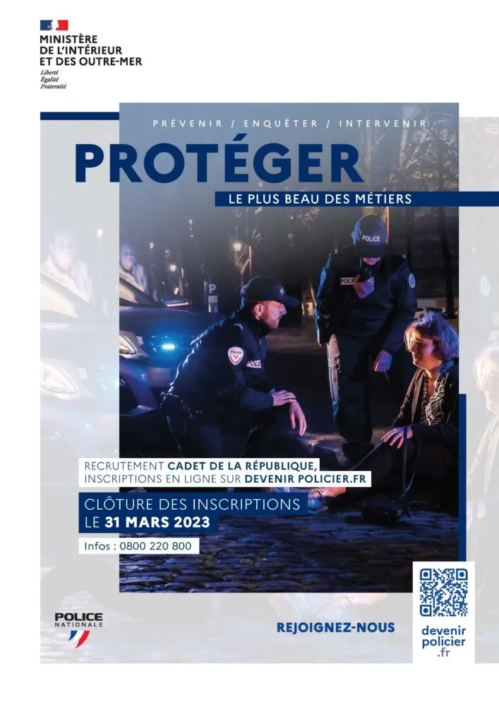 Inscrivez-vous en ligne ou par voie postale jusqu’au 31 mars 2023 : https://www.devenirpolicier.fr/nous-rejoindre/autres-recrutements/cadet-de-la-republique#xtor=AD-13
