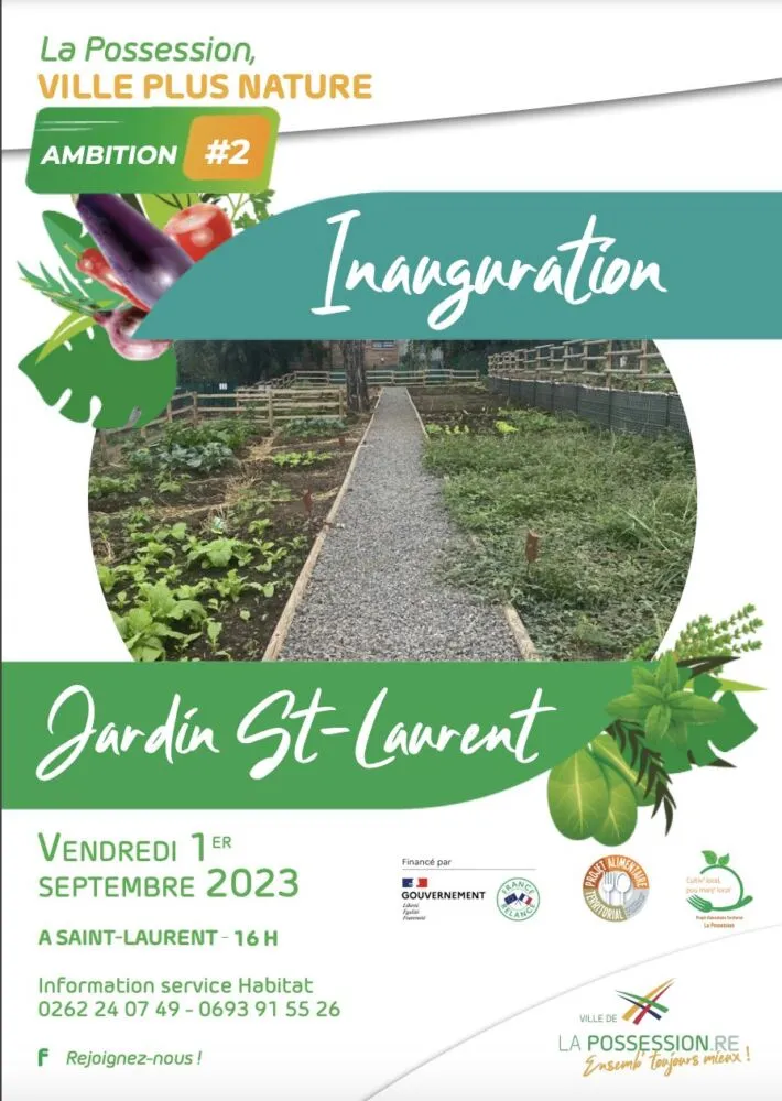 Dans le cadre de sa politique citoyenne et environnementale, la Ville de La Possession inaugure son nouveau Jardin Partagé de Saint Laurent, vendredi 1er septembre à 16h, entre la rue Romain Roland et la Rue Charles Baudelaire à La Possession.