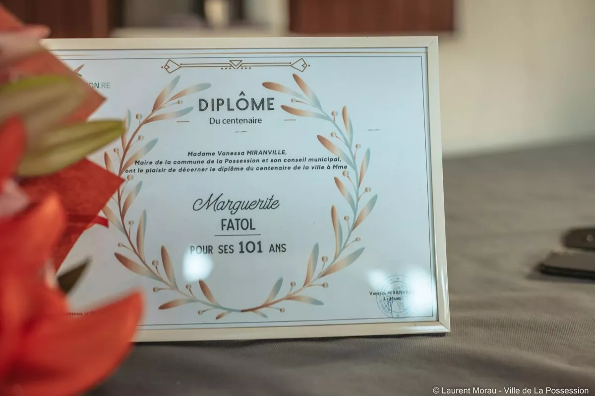 Collectivités/La Possession La Possession : Marguerite FATOL fête ses 101 ans ! par La Rédaction 2 novembre 2022 1 min de lecture Joyeux Anniversaire à Marguerite FATOL. Cette centenaire de La Possession souffle, aujourd’hui, mercredi 02 novembre ses 101 bougies. À cette occasion, elle a reçu son diplôme de centenaire décernée par la ville de La Possession. Marguerite FATOL était agricultrice et vendeuse de lait. Elle profite maintenant de sa retraite et de cette journée toute particulière en famille. Ne manquez pas toute l’actualité de La Réunion ! Abonnez-vous à la newsletter de Free Dom ! Valider Partager Facebook Twitter Pinterest Linkedin Whatsapp Reddit Email Catégorie: centenaire Vous pourriez être intéressé par 29 décembre 2025 Point sur le réseau routier départemental, 29 décembre à 16H30 29 décembre 2025 Fortes pluies : appel à la plus grande prudence à Saint-Paul 29 décembre 2025 Intempéries : radiers submergés à Trois Bassins et à Saint-Paul La Rédaction Laisser un commentaire Annuler la réponseYour email address will not be published. Enregistrer mon nom, mon e-mail et mon site dans le navigateur pour mon prochain commentaire. Current ye@r * Leave this field empty Article précédent St-André : circulation modifiée à partir de 13h Article suivant Irrigation du Littoral Ouest : découvrez les projets de développement agricole de l’antenne 4 (VIDEO) Articles récents... Mercredi 31 décembre 2025 – Météo, éphéméride et horoscope du jour Hommage à Johnny Hallyday sur Free Dom 2 ce 5 décembre Mardi 30 décembre 2025 – Météo, éphéméride et horoscope du jour Saint-Joseph : découverte de 2337 plants de cannabis, arrestation de 2 individus Point sur le réseau routier départemental, 29 décembre à 16H30 Suicide sur le pont de la Rivière d’Abord : importante mobilisation des secours et des forces de l’ordre Radier submergé à Ilet Furcy : la route de Cilaos fermée à la circulation cette nuit Fortes pluies : appel à la plus grande prudence à Saint-Paul Saint-Gilles-les-Bains : une route impraticable, les riverains montent au créneau (VIDEOS) Très grands excès de vitesse : un délit passible de prison depuis le 29 décembre 2025