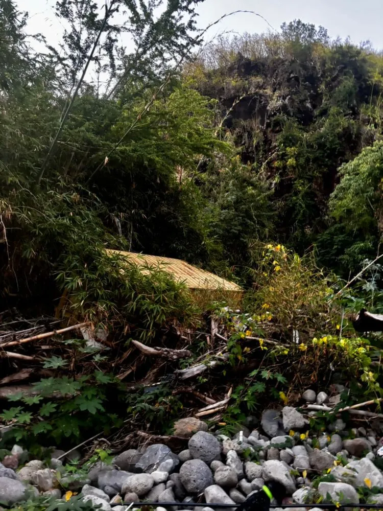 Il s’agit certainement de décombres emportés par la crue du cyclone Garance en février dernier, depuis les entreprises situées plus en amont sur la grande Ravine des Lataniers.