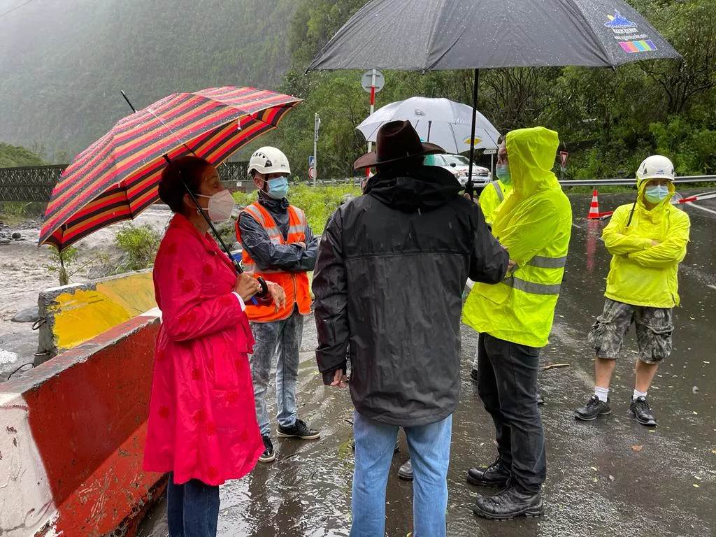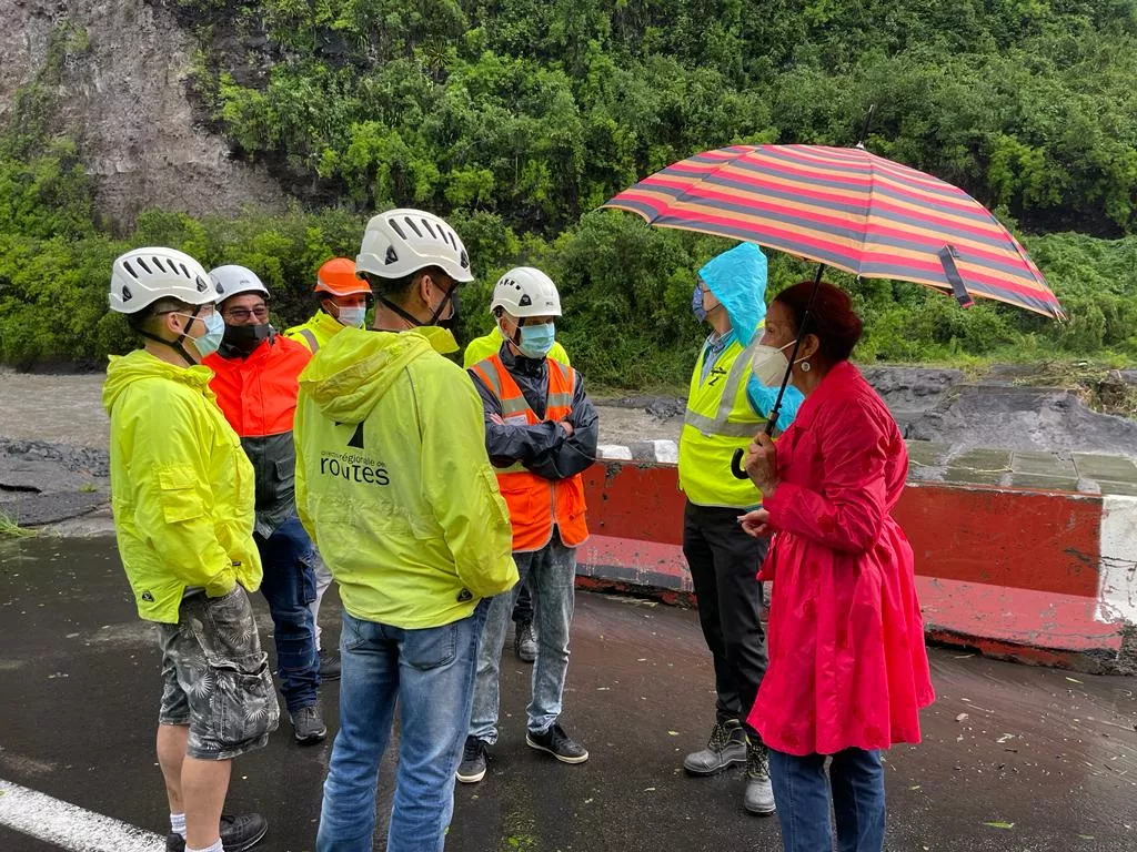 Huguette Bello s’est rendue sur la NRL ce vendredi 4 février pour faire le point sur le passage du cyclone tropicale intense Batsirai et ses conséquences sur la Nouvelle Route du Littoral.