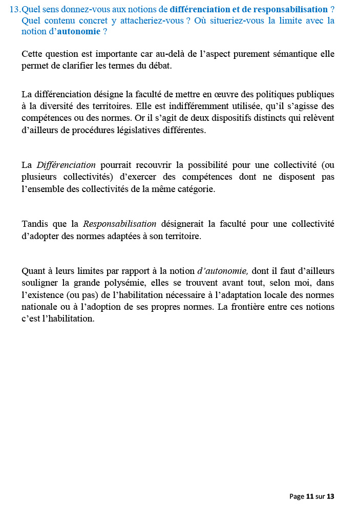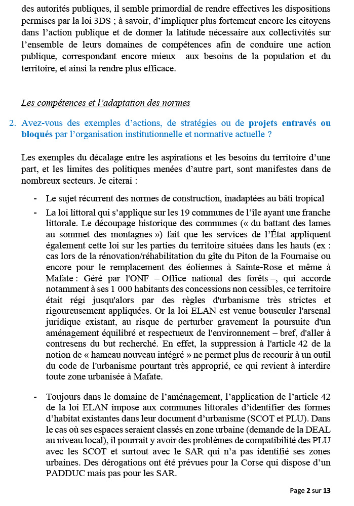 Il convient de noter que l’ensemble des élus en France hexagonale souhaitent un nouvel acte de décentralisation et que le gouvernement a, à plusieurs reprises, exprimé son accord pour plus de différenciation, de dérogation, d’adaptation et d’expérimentation.