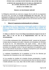 texteDSOM_Audition de la Présidente du Conseil Regional_Etude sur L AVENIR INSTITUTIONNEL DES OUTRE MER _13102022-1 par Céline Hardelain 26 avril 2024 1 min de lecture Ne manquez pas toute l’actualité de La Réunion ! Abonnez-vous à la newsletter de Free Dom ! Valider Partager Facebook Twitter Pinterest Linkedin Whatsapp Reddit Email Céline Hardelain Laisser un commentaire Annuler la réponseYour email address will not be published. Enregistrer mon nom, mon e-mail et mon site dans le navigateur pour mon prochain commentaire. Current ye@r * Leave this field empty Articles récents... Jeudi 1ᵉʳ janvier 2026 – Météo, éphéméride et horoscope du jour Mercredi 31 décembre 2025 – Météo, éphéméride et horoscope du jour Hommage à Johnny Hallyday sur Free Dom 2 ce 5 décembre Mardi 30 décembre 2025 – Météo, éphéméride et horoscope du jour Saint-Joseph : découverte de 2337 plants de cannabis, arrestation de 2 individus Point sur le réseau routier départemental, 29 décembre à 16H30 Suicide sur le pont de la Rivière d’Abord : importante mobilisation des secours et des forces de l’ordre Radier submergé à Ilet Furcy : la route de Cilaos fermée à la circulation cette nuit Fortes pluies : appel à la plus grande prudence à Saint-Paul