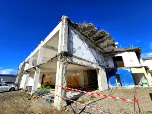 « Nous sommes ici sur le site de l’immeuble Cannelle à Saint-Benoît, qui est en partie déconstruit… pour laisser la place à 56 logements pour personnes âgées au centre-ville de Saint-Benoît », a déclaré Frédéric Pillore, directeur général de la SEMAC.