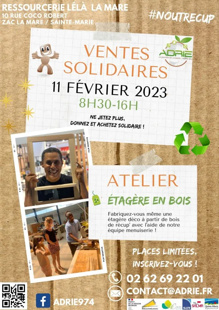 CINOR/Collectivités La Ressourcerie LéLà à Ste-Marie : participez aux ventes solidaires ce samedi 11 février ! par La Rédaction 9 février 2023 1 min de lecture Ce samedi 11 février 2023 à La Ressourcerie LéLà – ADRIE, situé dans la Zac la Mare à Ste-Marie, participez aux ventes solidaires et ateliers « Etagère en bois ». Ne manquez pas toute l’actualité de La Réunion ! Abonnez-vous à la newsletter de Free Dom ! Valider Partager Facebook Twitter Pinterest Linkedin Whatsapp Reddit Email Vous pourriez être intéressé par 17 décembre 2025 De l’ombre à la lumière : une journée culturelle au Chaudron pour honorer la Princesse Niama (Photos-Vidéo) 14 décembre 2025 Fêtes de fin d’année : la CINOR affiche carton plein avec ses ateliers de création et de recyclage 11 décembre 2025 Maurice Gironcel tire sa révérence à la présidence de la CINOR mais pas de retraite pour le militant ! (Photos-Vidéo) La Rédaction Laisser un commentaire Annuler la réponseYour email address will not be published. Enregistrer mon nom, mon e-mail et mon site dans le navigateur pour mon prochain commentaire. Current ye@r * Leave this field empty Article précédent Festival de l’Océan : un concours de dessin lancé ! Article suivant Le Tampon : le groupe musical tamponnais Pat’ Jaune sera en concert ce samedi 11 février Articles récents... Jeudi 1ᵉʳ janvier 2026 – Météo, éphéméride et horoscope du jour Mercredi 31 décembre 2025 – Météo, éphéméride et horoscope du jour Hommage à Johnny Hallyday sur Free Dom 2 ce 5 décembre Mardi 30 décembre 2025 – Météo, éphéméride et horoscope du jour Saint-Joseph : découverte de 2337 plants de cannabis, arrestation de 2 individus Point sur le réseau routier départemental, 29 décembre à 16H30 Suicide sur le pont de la Rivière d’Abord : importante mobilisation des secours et des forces de l’ordre Radier submergé à Ilet Furcy : la route de Cilaos fermée à la circulation cette nuit Fortes pluies : appel à la plus grande prudence à Saint-Paul Saint-Gilles-les-Bains : une route impraticable, les riverains montent au créneau (VIDEOS)