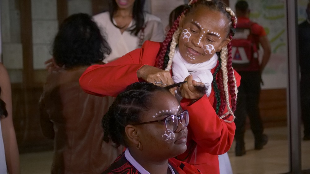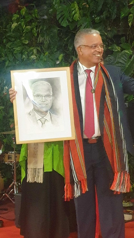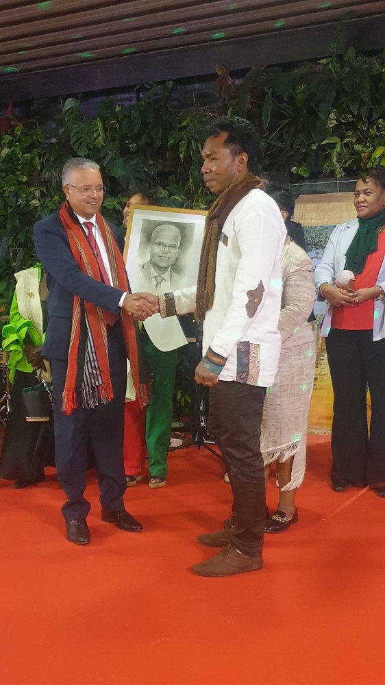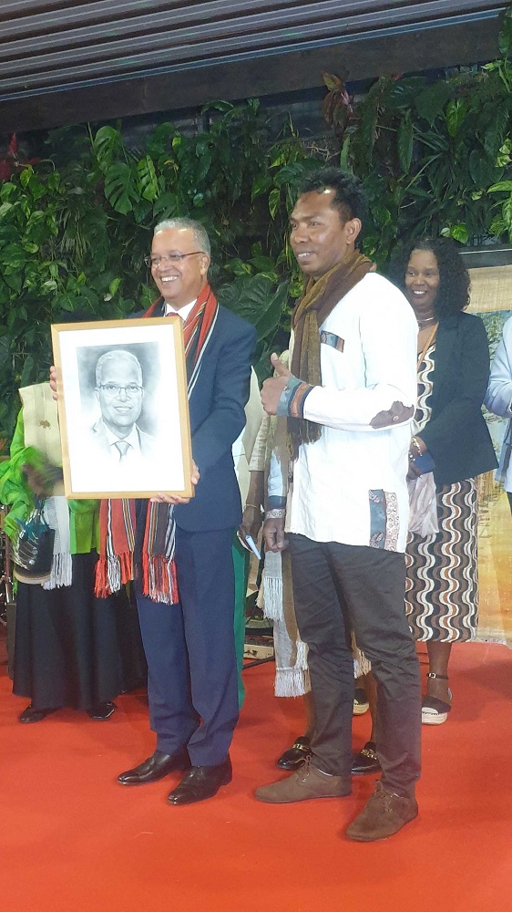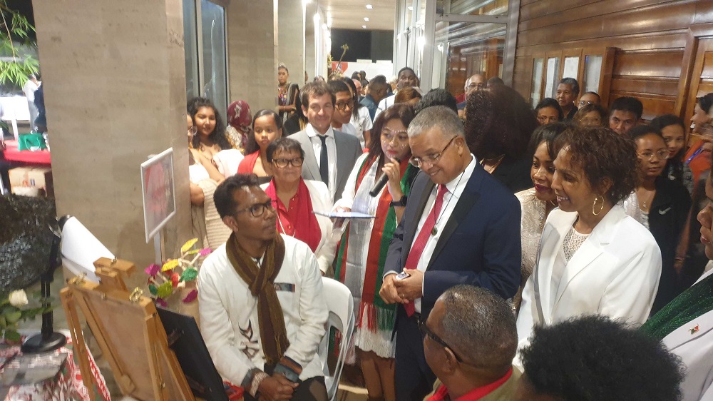 En compagnie de la Consule Yolande Razanamalala, des Conseillers départementaux Jean-François Nativel, Eglantine Victorine et Fabiola Lagourde ainsi que des représentants du Groupe de dialogue inter-religieux, Cyrille Melchior a visité les stands de découverte de l’artisanat à base de raphia et d’écorce de bananier, et les ateliers de tressage traditionnel et d’initiation à la valiha, instrument de musique emblématique. Après la visite, le Président a reçu en cadeau un portrait fait-main par un jeune talentueux artiste dénommé Mahery.