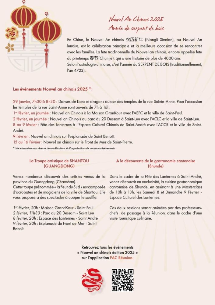 Pour plus d’informations, retrouvez tous les événements du Nouvel An Chinois 2025 sur l’application FAC Réunion.