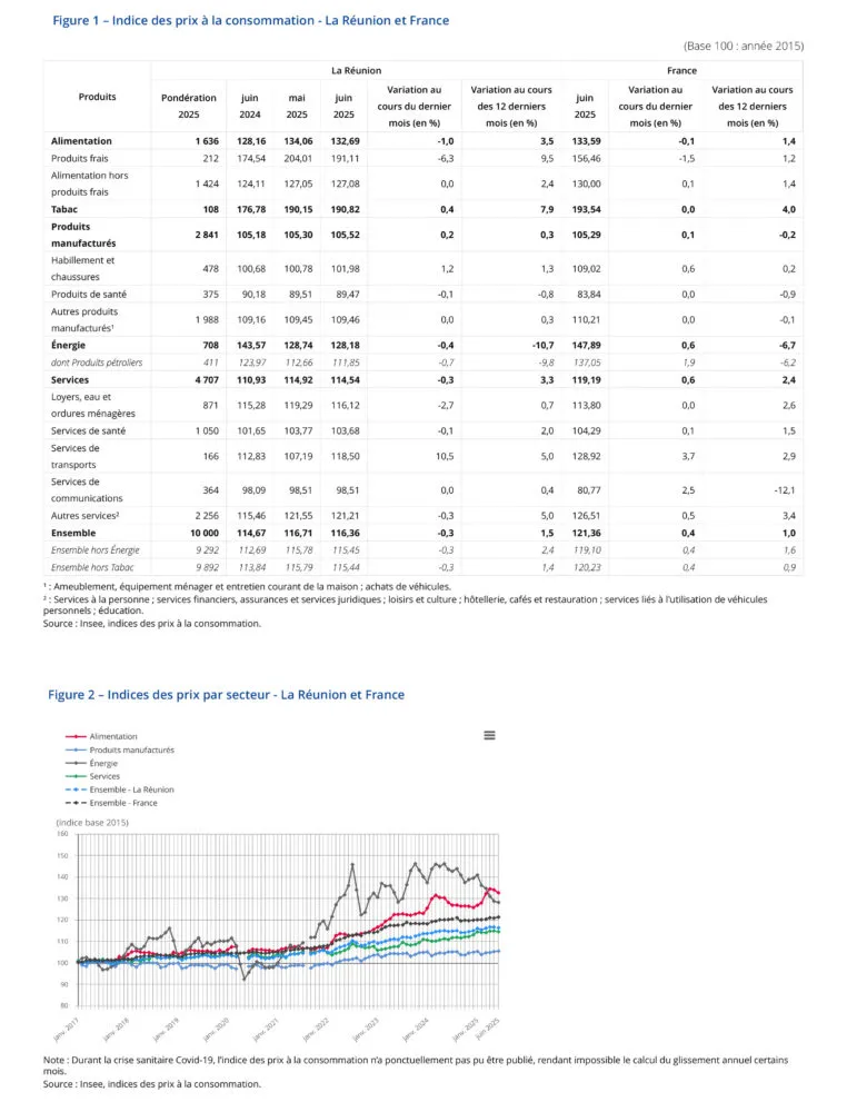 Sur un mois, entre mai 2025 et juin 2025, les prix reculent de 0,3 % à La Réunion