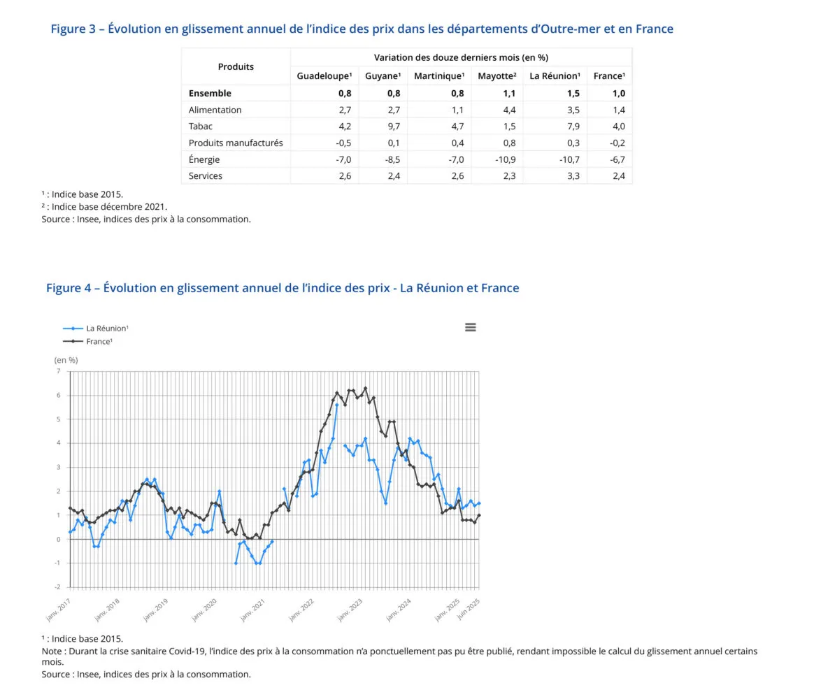 Sur un an, entre juin 2024 et juin 2025, les prix augmentent de 1,5 % à La Réunion