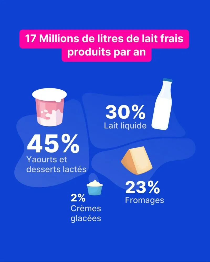 La filière laitière réunionnaise confirme son rôle stratégique dans l’approvisionnement local. Chaque année, près de 17 millions de litres de lait frais sont produits sur l’île, une performance qui permet d’alimenter un large éventail de produits transformés fabriqués localement.