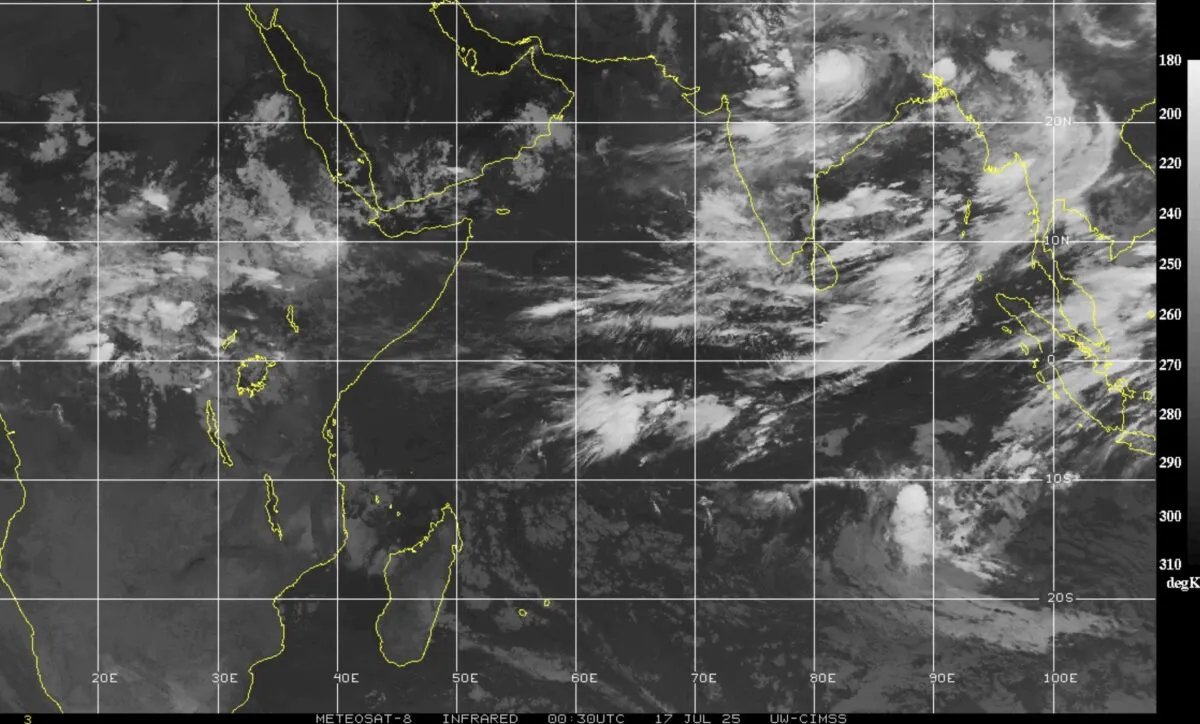 Une cyclogenèse inattendue vient de se former loin des terres habitées dans l’océan Indien. Ce mercredi 16 juillet 2025 au soir, Météo-France a confirmé l’entrée dans sa zone de responsabilité d’un premier système dépressionnaire tropical, marquant ainsi le lancement anticipé de la saison cyclonique 2025/2026. Le phénomène, identifié comme la Zone Perturbée 01-20252026, évolue actuellement à près de 3800 km à l’est-nord-est de La Réunion, au large de l’Indonésie.