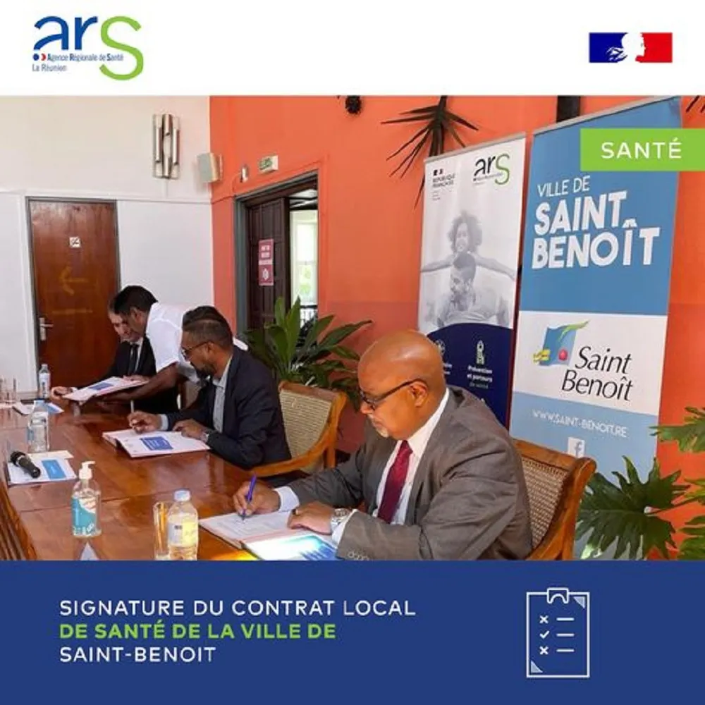 Le 31 mars 2023, Gérard Cotellon, le Directeur Général de l’ARS La Réunion, Michael Mathaux, le Sous-Préfet de l’arrondissement Saint-Benoît, et Patrice Selly, le Maire de la Ville de Saint-Benoît, ont signé un Contrat Local de Santé (CLS).