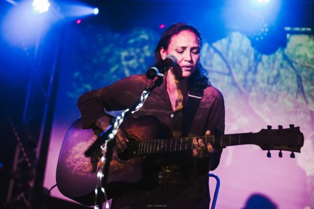 La programmation a offert un équilibre entre douceur et intensité. Juli’Ann a ouvert avec ses compositions sincères et délicates, suivie de Fany Turpin, dont le stand-up a déclenché de nombreux éclats de rire. Âme Sol a ensuite proposé une performance a cappella d’une grande intensité, tandis qu’Anabel Féri est revenue sur scène pour un stand-up mêlant malice et anecdotes créoles. Laura Ravel, dite Lêlo, a présenté ses ballades intimistes en malgache, et Aurélie Subijus a ouvert des espaces de réflexion avec ses lectures autour du projet « Le Chant des Mers ». Le trio SOLAH !, composé des sœurs Dedette et Patricia Philippe et de Sara Martin, a fusionné maloya, harmonies et percussions, démontrant que ce genre musical est aujourd’hui un terrain d’expression féminine et poétique.