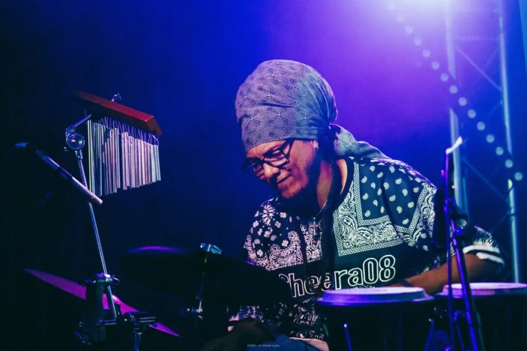 La soirée a débuté avec Eat My Butterfly (EMB) et ses invitées, notamment La Flor, qui a présenté un séga bilingue créole-espagnol, suivi d’une immersion dans un univers électro envoûtant avec Dilo, accompagnée des voix de Mélanie Bourire et Florence Clairambault. Les artistes ont proposé des textures organiques et des nappes électroniques surprenantes, incluant une reprise électro du titre « Bato Fou » de Ziskakan, offrant un warm-up audacieux et captivant. La maîtresse de cérémonie, Anabel Féri, a animé l’événement avec humour et bienveillance, liant les différents tableaux artistiques et donnant vie à un Matrimoine vivant et pluriel.