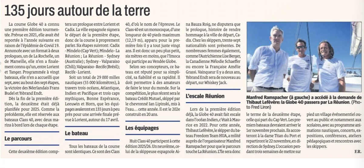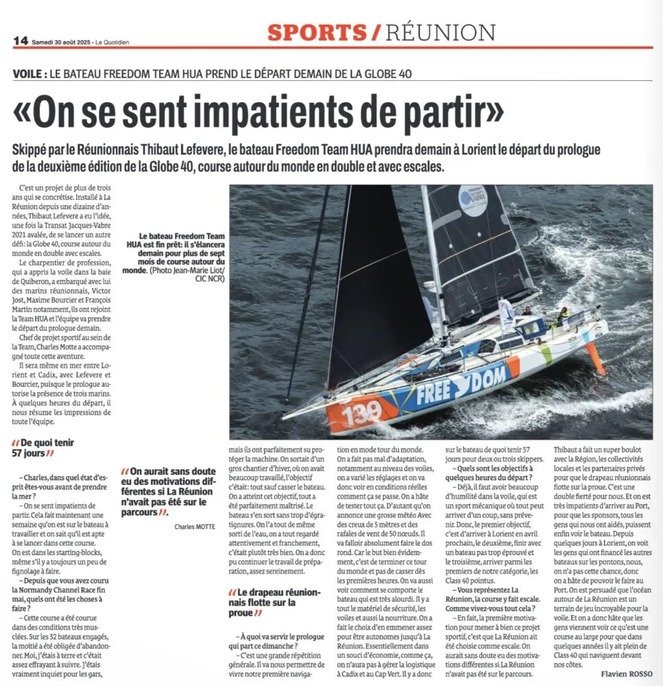 GLOBE 40 : le bateau Free Dom part demain (Le Quotidien – 30082025