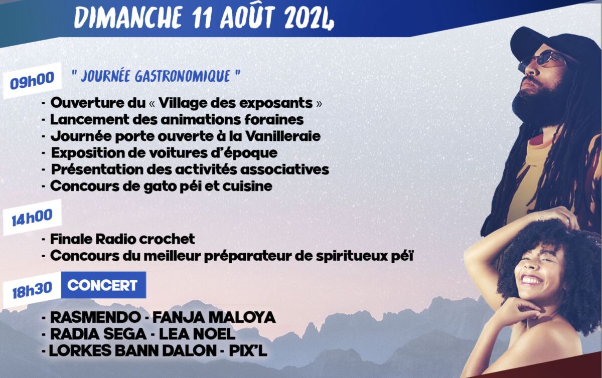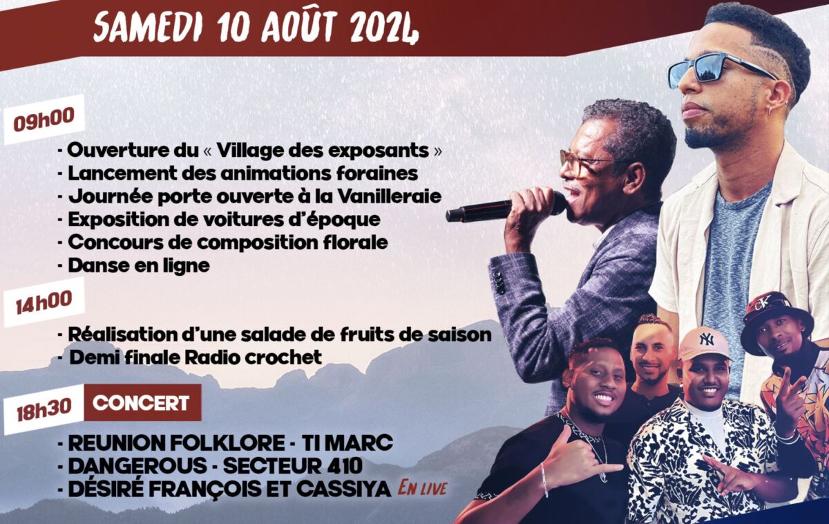 Il y a le volet artistique, mais la municipalité de Sainte-Suzanne insiste également beaucoup sur le volet historique et culturel de cette fête de la vanille organisé avec le soutien du Département, de la Région, de la Chambre d’agriculture, de l’Association développement culturel et sportif de Sainte-Suzanne, de la Vanilleraie, de Pro Vanille, de l’Association pour la promotion de la vanille à la Réunion (A2VR), du Crédit Agricole, du Codem et de l’Indication géographique protégée (IGP).