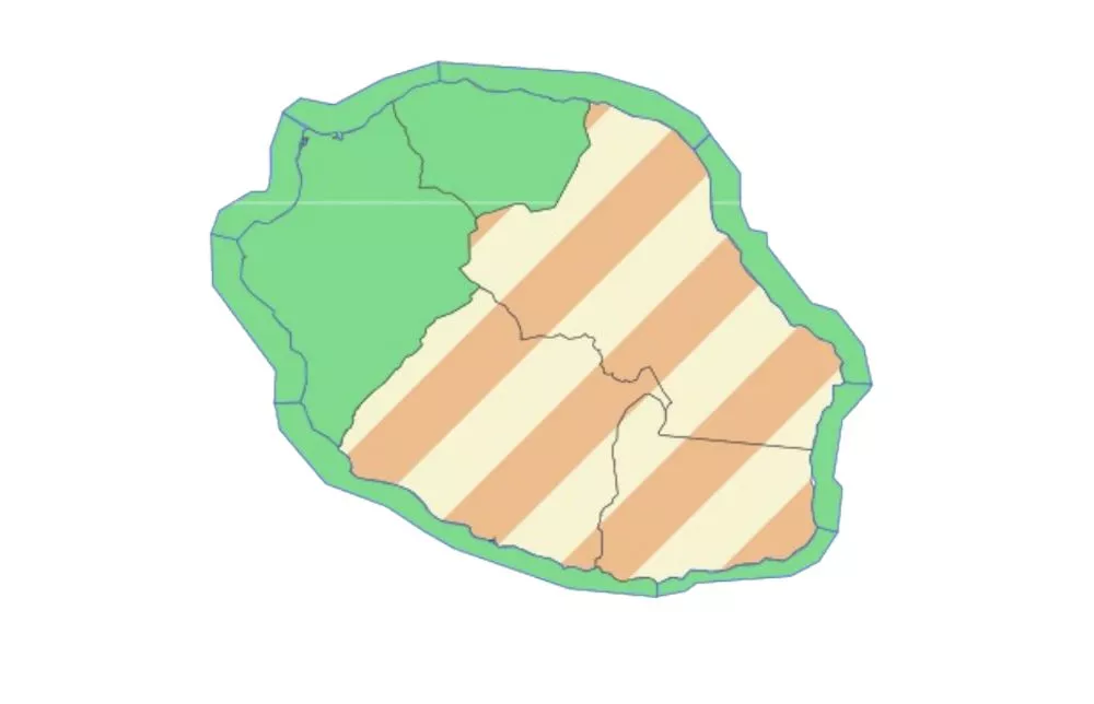 Le vent au sol est de secteur Nord-Est faible à modéré. Rafales de 40 à 50 km/h sur la région du Port, de Saint-Philippe et des Plaines.