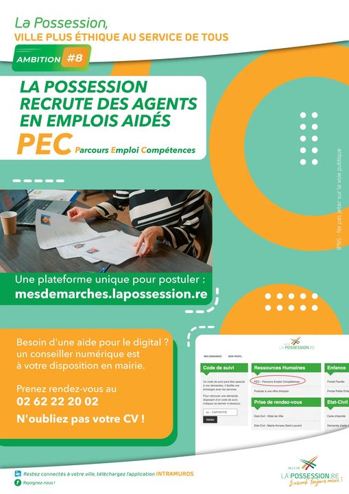 La ville de La Possession lance un appel à candidatures pour des postes dans le cadre du dispositif PEC (Parcours Emploi Compétences). Les recrutements concernent des ATSEM à Ilet à Malheur et à Aurère, ainsi qu’un agent technique des écoles à La Nouvelle.