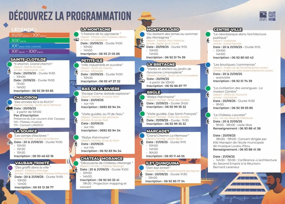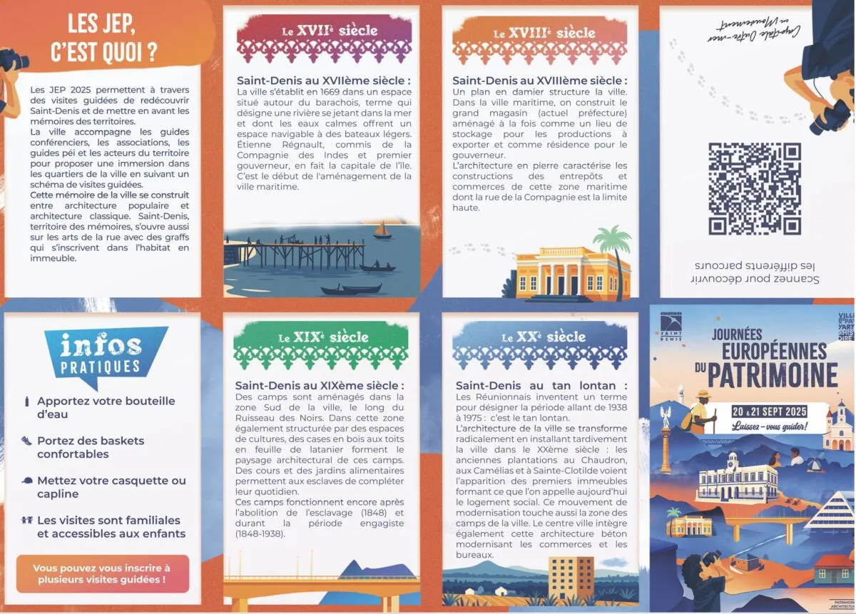 Ces 20 et 21 septembre 2025, la Ville de Saint-Denis participe aux Journées Européennes du Patrimoine. Au programme ? Plus de 20 visites guidées dans 14 quartiers, des expériences inattendues (escape game, rallye urbain, parcours culinaire…), des ateliers pour petits et grands, ainsi que l’exposition exceptionnelle du Car courant d’air au marché du Chaudron, au milieu des voitures lontan.