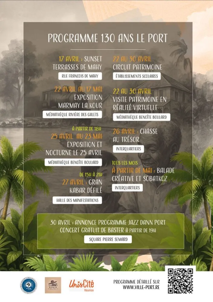 À l’occasion des 130 ans de la Commune du Port, la Ville organise une série d’événements culturels jusqu’au 30 avril 2025 avec comme principaux temps forts :