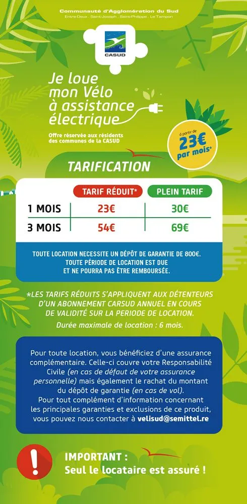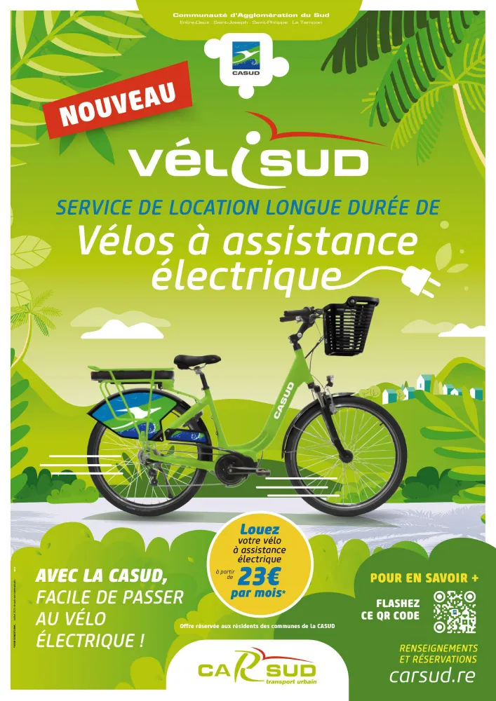 Une semaine après l’inauguration de sa nouvelle gare routière (la plus grande de l’île) avec ses voies en site propre, la CASUD lance VELISUD, son service de location de vélo à assistance électrique, à partir de 23 € par mois.
