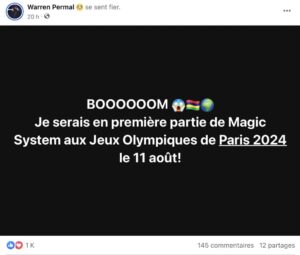 L’ artiste mauricien Warren Permal aura l’honneur de se produire aux côtés du célèbre groupe Magic System lors des Jeux Olympiques de Paris 2024.