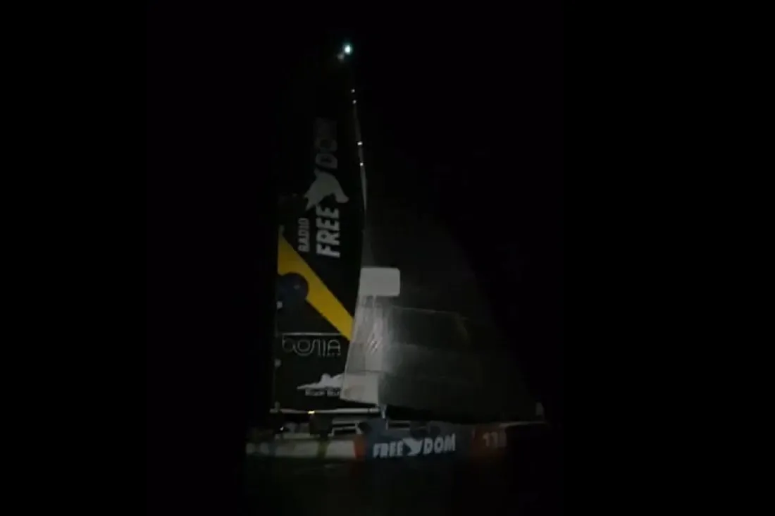 Pour la première fois, découvrez le bateau FREE DOM naviguant de nuit au sud de Maurice, capté… par leurs concurrents autrichiens du bateau Wilson.