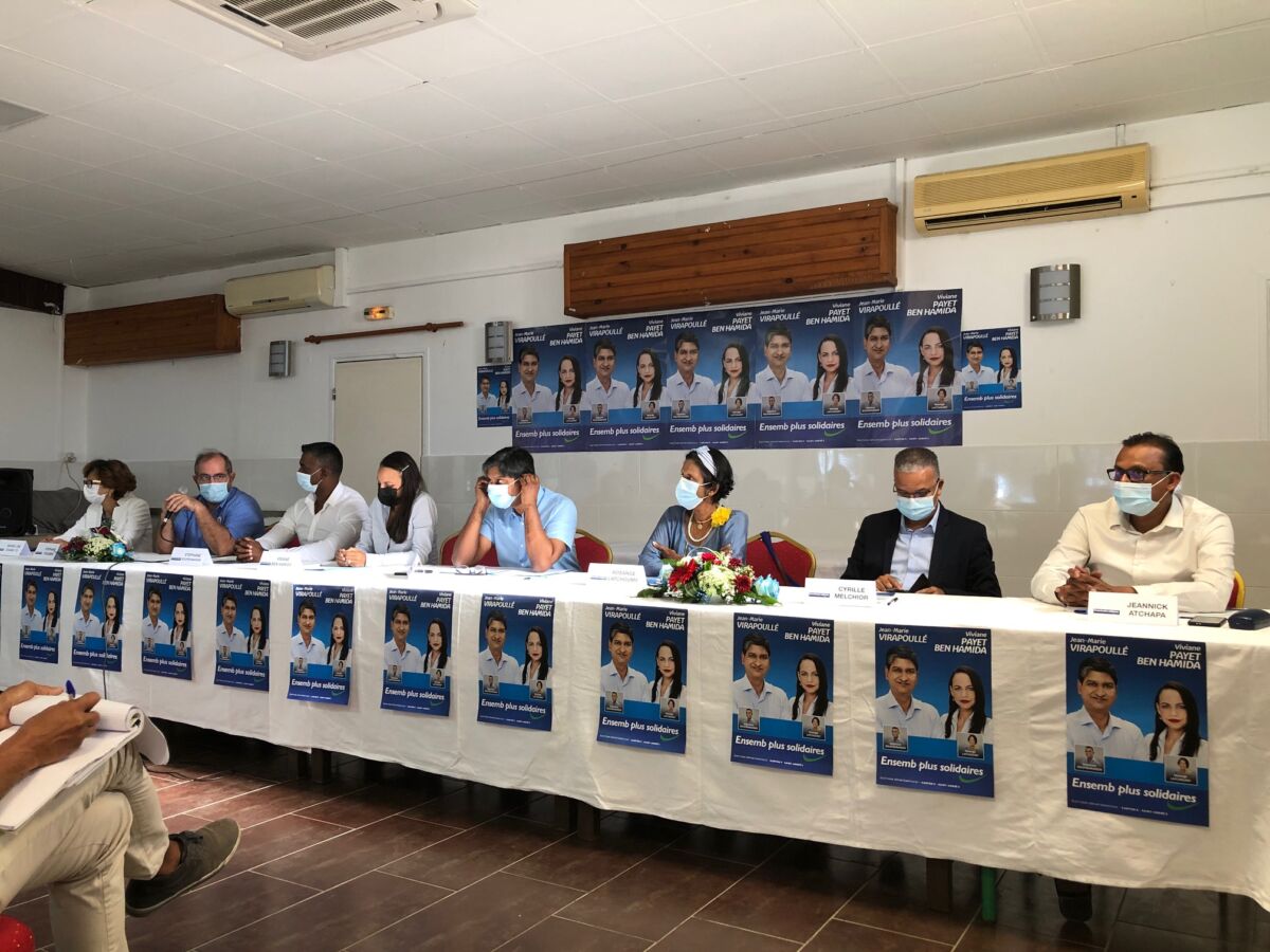 Le binôme Virapoullé/Ben Hamida (tous deux sont nés un 14 octobre) a tenu une conférence de presse cet après-midi (jeudi 20 mai 2021) au restaurant « Le Champ-Borne » à Saint-André en présence de Cyrille Melchior, président du Département, de Jeannick Atchapa, maire de Bras-Panon et de Marie-Lise Chane-To, ancienne 1ère adjointe de Jean-Paul Virapoullé, qui est à la 10ème place sur la liste de Didier Robert aux prochaines régionales. Ils ont été rejoints à la fin de la conférence de presse par Stéphane Fouassin, le maire de Salazie.