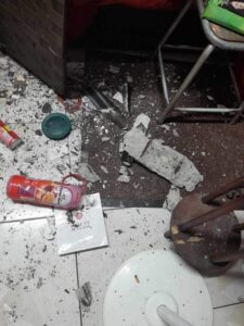 « Quand ça a commencé a craquer, j’étais entrain de cuisiner, je suis sortie de la maison à temp, je sentais que ça allait craquer et ça a craquer par derrière vers 18h30.. et l’agence les flamboyant ne me reloge pas l’assurance ne prend pas en charge. »