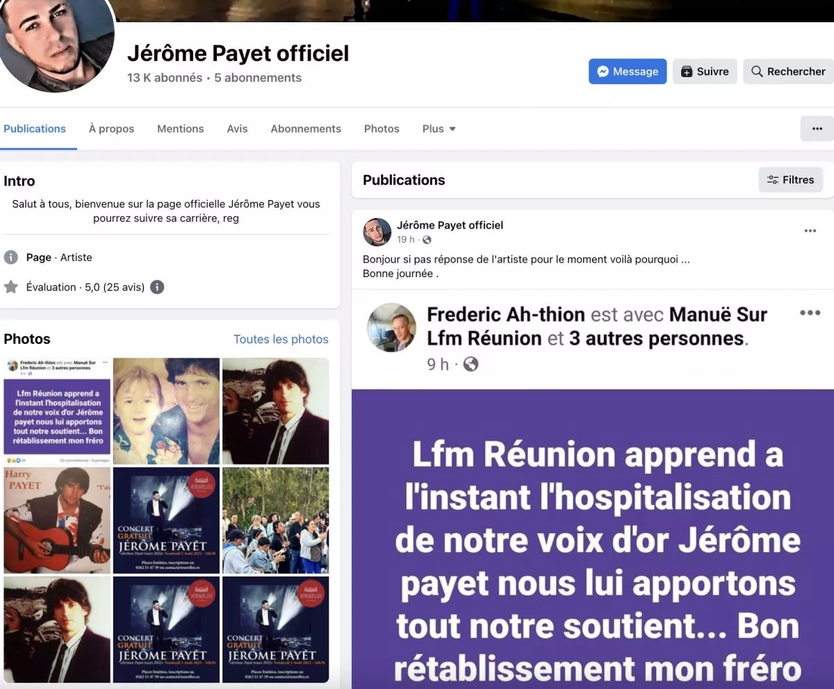 Le chanteur Saint-Joséphois qui fête cette année ces 30 ans de scène avait été hospitalisé après avoir attrapé un virus. Nous lui souhaitons un prompt rétablissement ! » précise la page.