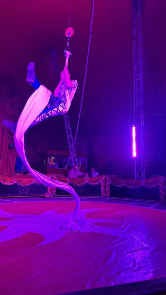 Un spectacle de deux heures qui fusionne habilement la modernité avec les traditions du cirque, patin à roulettes acrobatique, tissu aérien, cerceau aérien, sangle aérienne, mât chinois, jonglerie, T-Rex, Bumblebee (Transformers), Flash McQueen(Cars), des artistes nationaux et internationaux venant d’Ukraine et d’Argentine, et l’extraordinaire « Laser Man ». Franck dans le rôle de Mr Loyal tandis que Natacha assure la régie son et lumière.