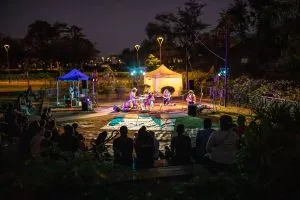 Ce concert était également l’occasion pour un groupe de 12 jeunes portois du Centre social et culturel Coeur Saignant de clôturer une expérience artistique enrichissante. Ils ont été accompagnés pendant toute une semaine par les membres du groupe Mouvman Alé. Au programme de la musique mais aussi du yoga, du football, de la randonnée et du surf dans le cadre de ce projet mené en partenariat avec le Théâtre sous les arbres.