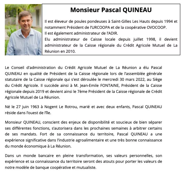 Pascal Quineau, nouveau président du Conseil d’Administration de la Caisse Régionale