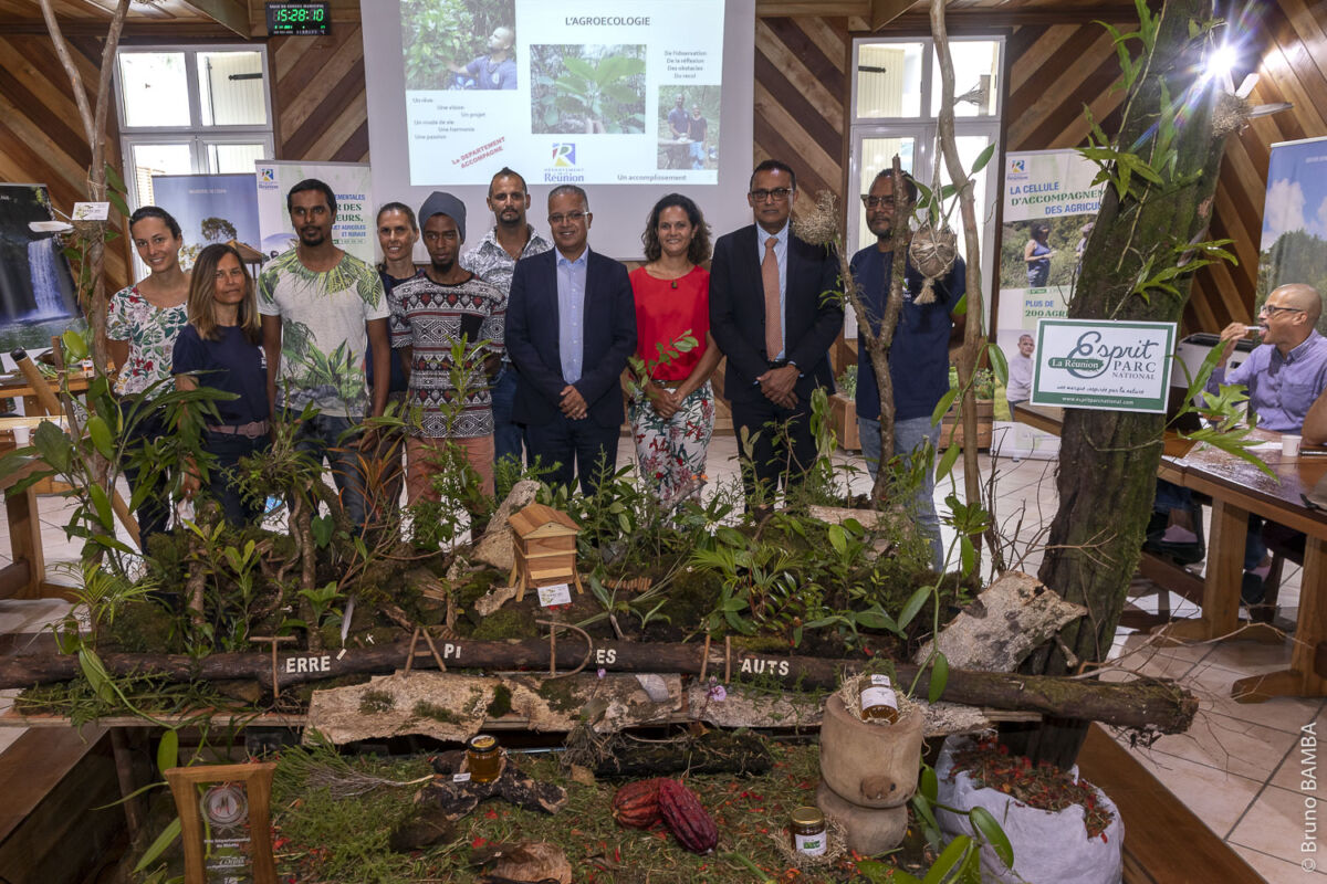 La journée s’est achevée en apothéose à la salle Raymond Barre où s’est tenue une présentation originale et théâtralisée du projet de Mélissa et Christophe Dalleau, agriculteurs. Travailleur porteur de handicap, titulaire d’un BPREA, Christophe est lauréat du Prix Départemental du Mérite pour son parcours exemplaire. Avec son épouse, il développe des plantations en agroforesterie (cacao, vanille, apiculture, gingembre, manioc) à la Caroline. Baptisé Terre ‘Api des Hauts, son projet – soutenu par la cellule d’accompagnement des agriculteurs du Département – vise à la création d’une « maison de la forêt » à but pédagogique et d’une « ferme découverte » d’ici 3 ans ainsi qu’à la mise en place d’un projet d’insertion pour le public en situation de handicap. Il s’inscrit dans le cadre global du projet de la nouvelle équipe municipale de Jeannick Atchapa qui ambitionne de faire de Bras-Panon, « un territoire d’expérimentation agricole et un laboratoire de la vie créole ».
