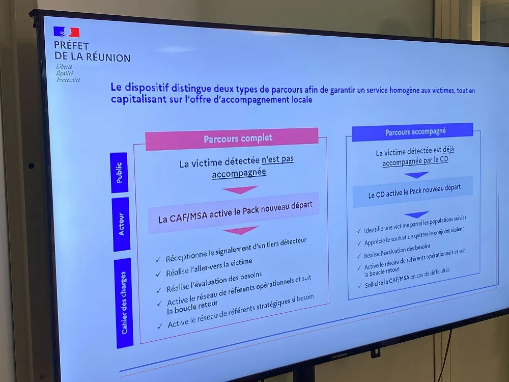 Yaël Braun-Pivet a ainsi pu découvrir les modalités de mise en œuvre, dans l’île, de l’Aide d’urgence universelle, instaurée depuis le 1er décembre 2023, et du Pack nouveau départ, un dispositif actuellement testé dans le département du Val d’Oise et qui sera étendu à quatre autres départements cette année, dont La Réunion.