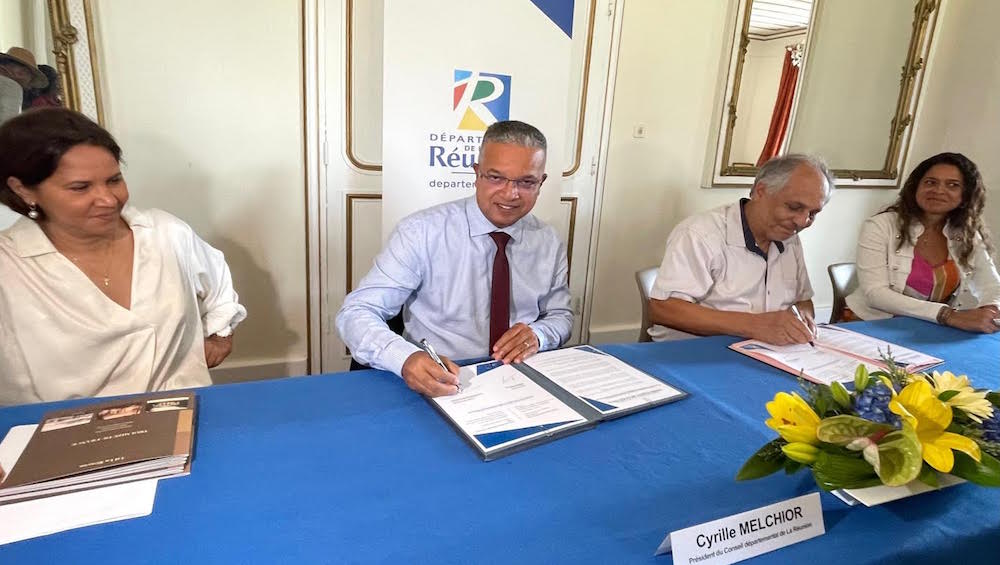 Ce mardi matin, 13 décembre 2022, Cyrille Melchior président du Département et Axel Gauvin, président de l’Office de la Langue (Lofis la lang) ont signé la Charte de la collectivité bilingue créole réunionnais-français en présence d’Isabelle Erudel, conseillère départementale du Port qui a porté ce projet, de Catherine Chane-Kune, directrice du service « Culture et sports » et de nombreuses autres personnes.L’occasion aussi bien pour Cyrille Melchior, que pour Axel Gauvin et Isabelle Erudel d’insister sur « la complémentarité » des deux langues, à savoir le créole réunionnais, notre langue maternelle et le français.