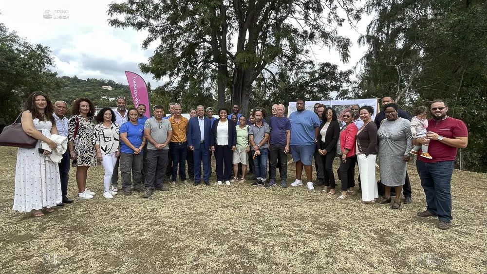 La signature du PST2 était suivie de celle d’une convention sur le Plan 1 Million d’Arbres pour La Réunion (P1MA) déployé par le Département. Ce nouvel accord avec Saint-Louis prévoit notamment la création de micro-forêts et la plantation de plus de 46 000 individus jusqu’en 2026 dont la moitié devra être produite par les équipes techniques de la commune. Pour marquer le début de l’opération, Cyrille Melchior a offert un pied de bois de senteur blanc, arbre symbolique de Saint-Louis, à Juliana M’Doihoma.