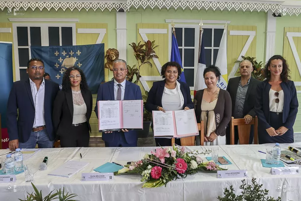 4,6 M€. C’est le montant de l’enveloppe consacrée par le Département de La Réunion au développement et au mieux vivre de la population de la Commune de Saint-Louis, dans le cadre du Pacte de Solidarité Territoriale 2ème génération (PST2) signé le 31 août. « Nous restons dans une dynamique de co-construction des projets soutenus et financés par le Département, cela en adéquation, le plus justement possible, avec les projets de la municipalité et les besoins de la population » a déclaré le Président Cyrille Melchior, entouré de la Maire de Saint-Louis Juliana M’Doihoma et des vice-présidentes du Département, Flora Augustine-Etcheverry et Camille Clain ainsi que des conseillers départementaux Jean-François Payet et Pascal Mangué.