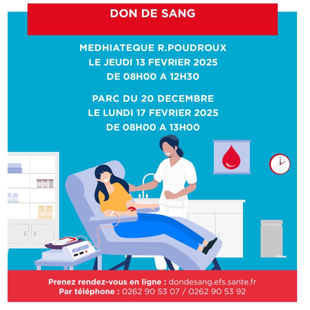Aujourd’hui, une collecte de sang est organisée à la médiathèque R. Poudroux de La Chaloupe, de 08h00 à 12h30. C’est une occasion précieuse de contribuer à cet élan de solidarité et d’aider les patients en attente de transfusion.