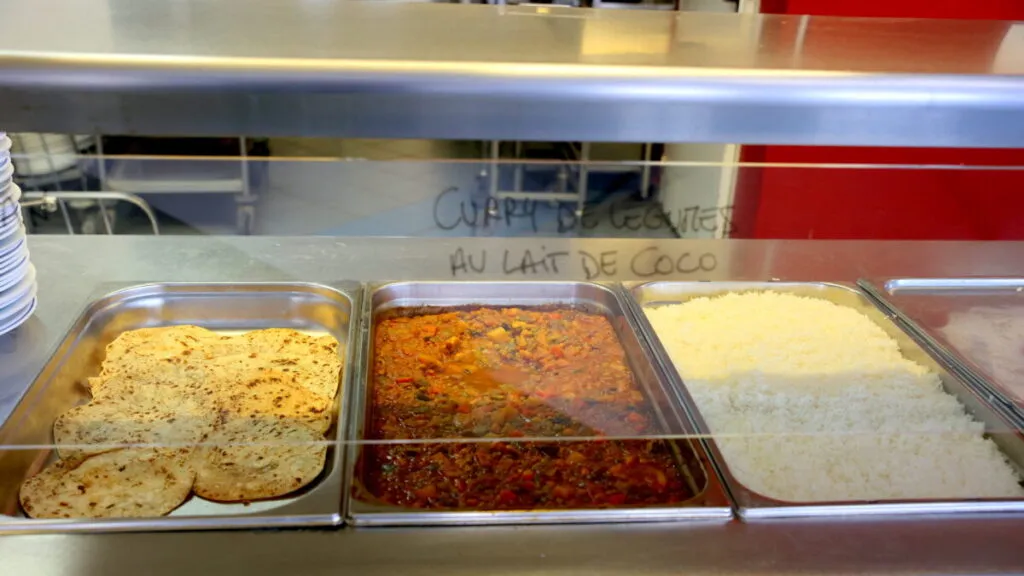 « Manger végétarien, ça ne me pose pas de problème. D’ailleurs, la viande à la cantine, j’en mange de moins en moins. Quand il n’y a pas de menu végétarien, je me contente souvent de riz et de grains. Alors aujourd’hui, c’est une belle surprise, surtout avec le chou à la crème à la patate douce ! »