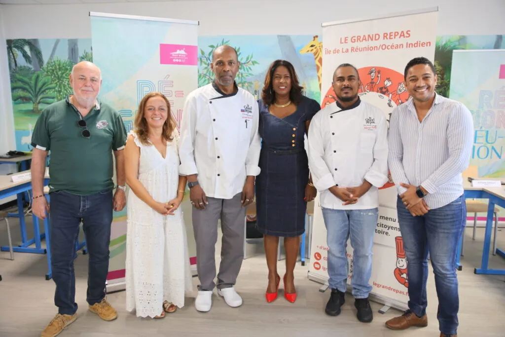 À l’occasion du Grand Repas 2025, le lycée Marguerite Jauzelon à Bellepierre a accueilli un moment de partage et de découverte autour d’un menu 100 % local et végétarien, imaginé par les chefs Jofrane Dailly et Gérard Anacoya. Un événement fédérateur qui met à l’honneur la gastronomie réunionnaise, le savoir-faire des agents de restauration scolaire et l’engagement de la Région Réunion pour une alimentation saine et durable.