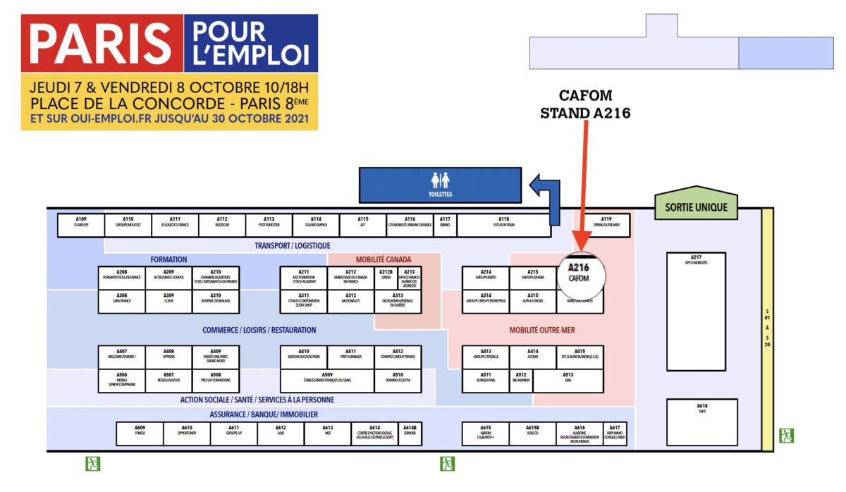 La CAFOM vous attend sur son stand(A216), le jeudi 7 et vendredi 8 octobre 2021 au Salon Paris pour l’emploi, de 10h à 18h en journée continue.
