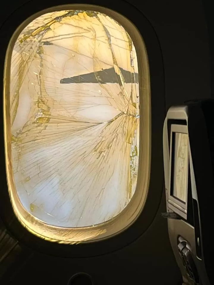 L’un des hublots de la cabine d’un Boeing 787 Dreamliner de la compagnie polonaise « LOT Polish Airlines » alors qu’il entamait sa descente vers L’aéroport international John F. Kennedy de New York où il devait atterrir.