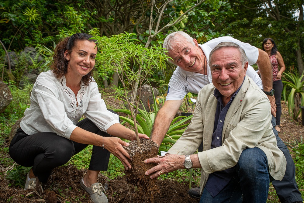 Après le dévoilement d’une plaque, les élus et représentants des associations environnementales ont planté de jeunes arbres endémiques, dans les allées du Jardin botanique.