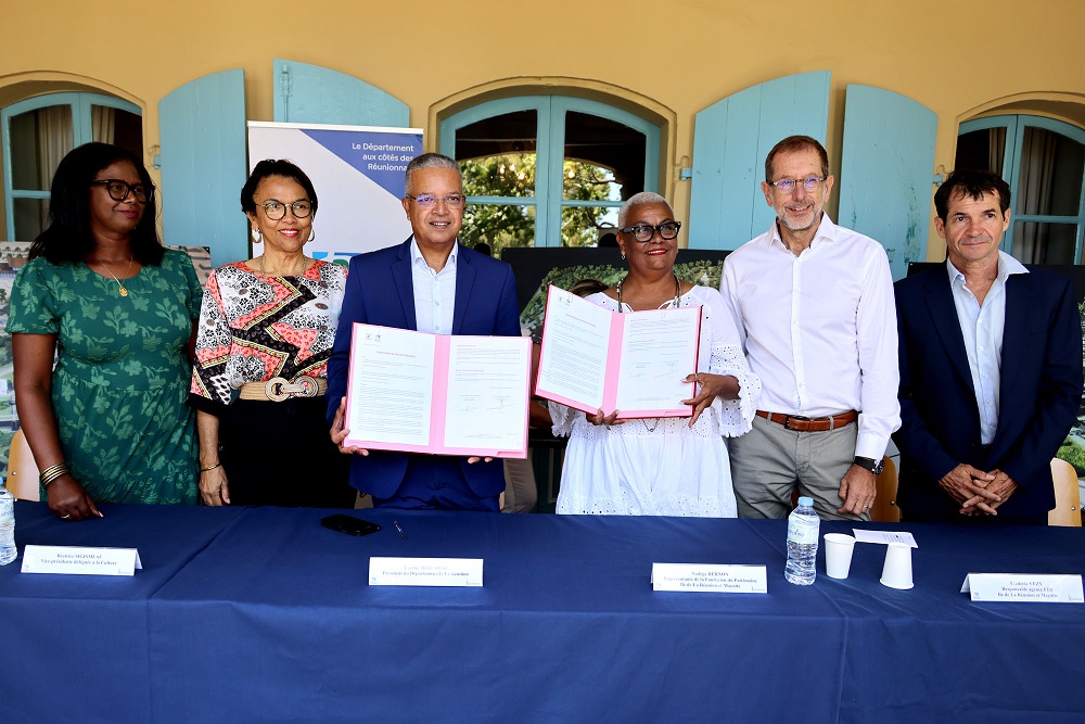 Cyrille Melchior, Président du Conseil départemental, a reçu un chèque de 500 000 euros des mains de la Fondation du patrimoine, le samedi 21 septembre, au titre du Loto du patrimoine. C’est le montant maximum qui peut être accordé par la Fondation. La cérémonie de remise de chèque s’est déroulée au Musée historique de Villèle, en présence de la vice-Présidente Béatrice Sigismeau, des Conseillers départementaux Eglantine Victorine et Jean-François Nativel, d’habitants du quartier et d’employés du musée.