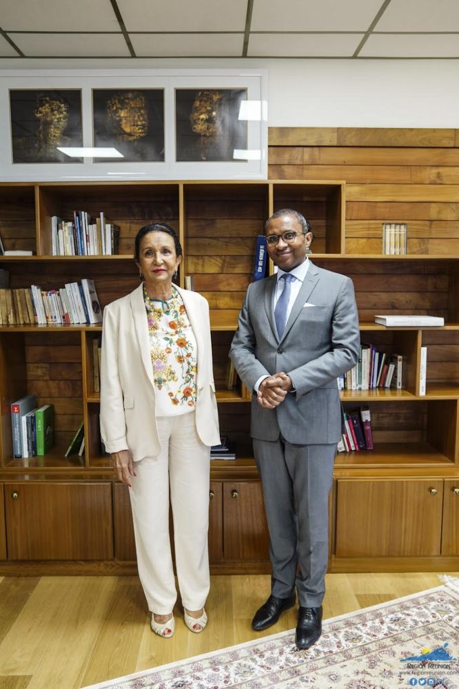 La Présidente de Région, Huguette Bello, a reçu ce jeudi 29 septembre, le Ministre de l’Éducation nationale et de la Jeunesse, monsieur Pap N’diaye. La Présidente Bello a tenu, dans un premier temps, à lui faire part de sa solidarité quant aux attaques abjectes dont ce dernier a fait l’objet, de la part de l’extrême droite, lors de sa nomination en tant que ministre. Elle lui a souhaité la bienvenue à l’île de La Réunion, terre du vivre ensemble où nous faisons quotidiennement la démonstration que notre unité se nourrit de la diversité des apports constitutifs de notre identité.
