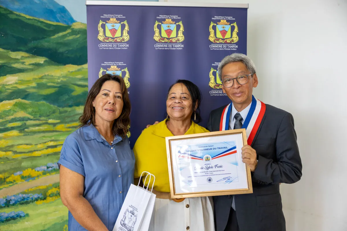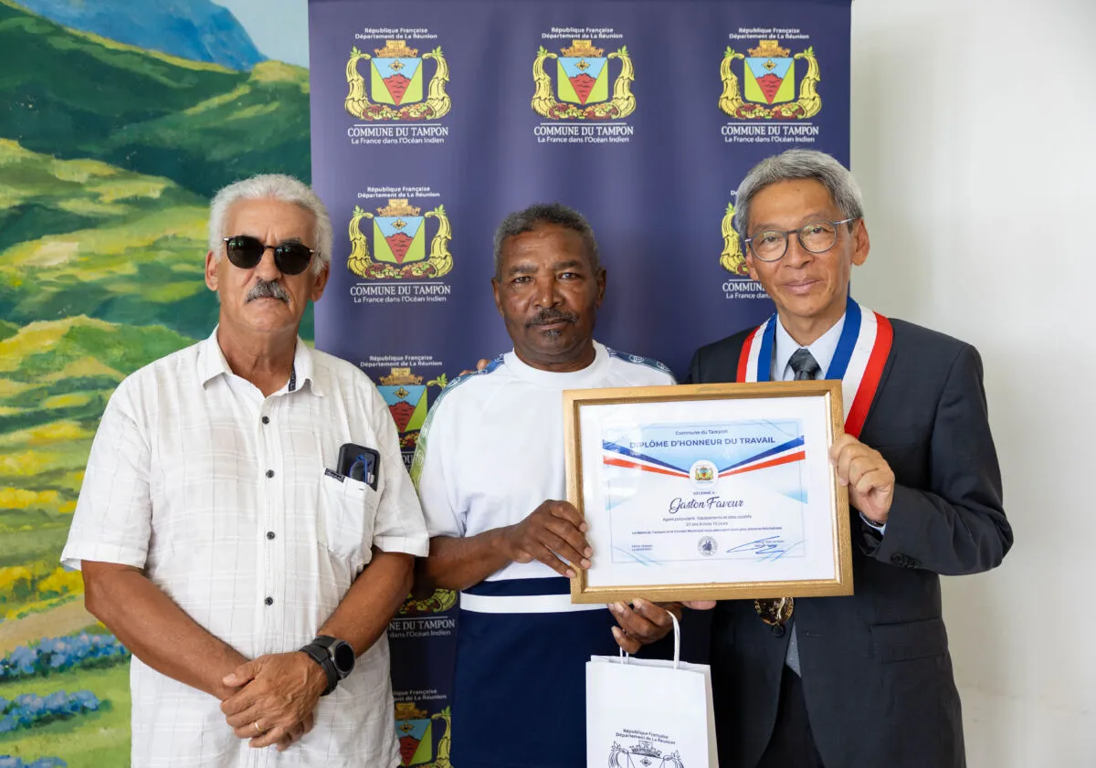 Mercredi 9 avril 2025, le Maire du Tampon Patrice Thien Ah Koon et le Conseil Municipal ont remis le diplôme d’honneur du travail à 12 agents sur le départ en retraite, en présence de leur famille célébrant ainsi leur engagement et leur service au sein de la collectivité.