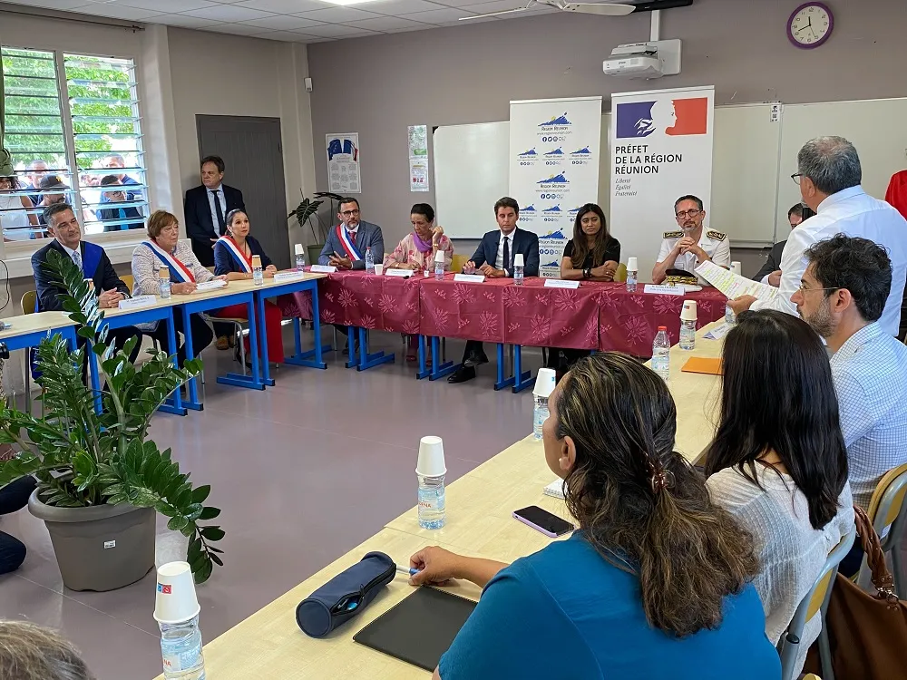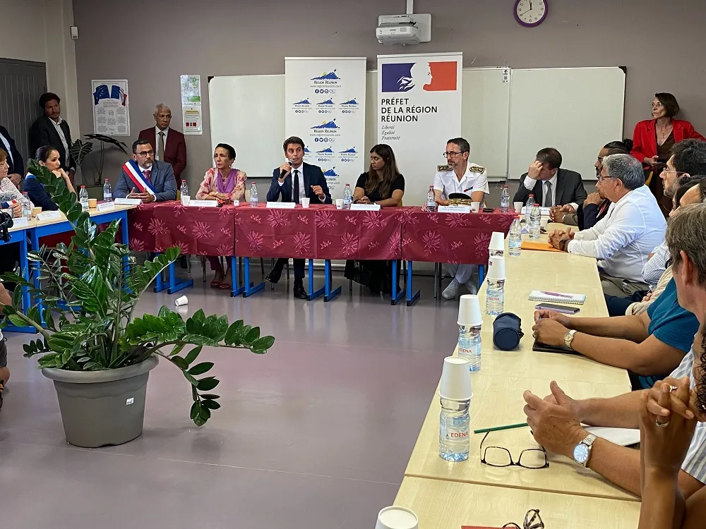 Gabriel Attal, le nouveau ministre de l’Éducation nationale et de la jeunesse  est  à  La Réunion pour cette rentrée des classes.  Voici le programme du jour du   successeur de Pap Ndiaye , qui est venu accompagné de Prisca Thevenot, secrétaire d’Etat chargée de la Jeunesse et du service national, lors de ce déplacement.