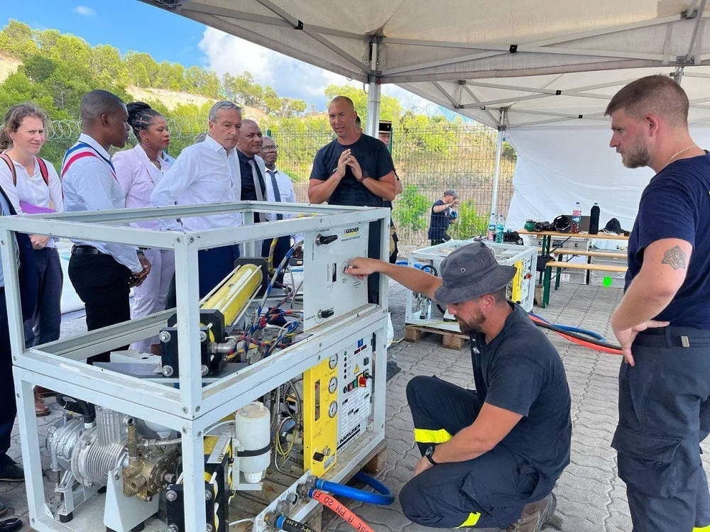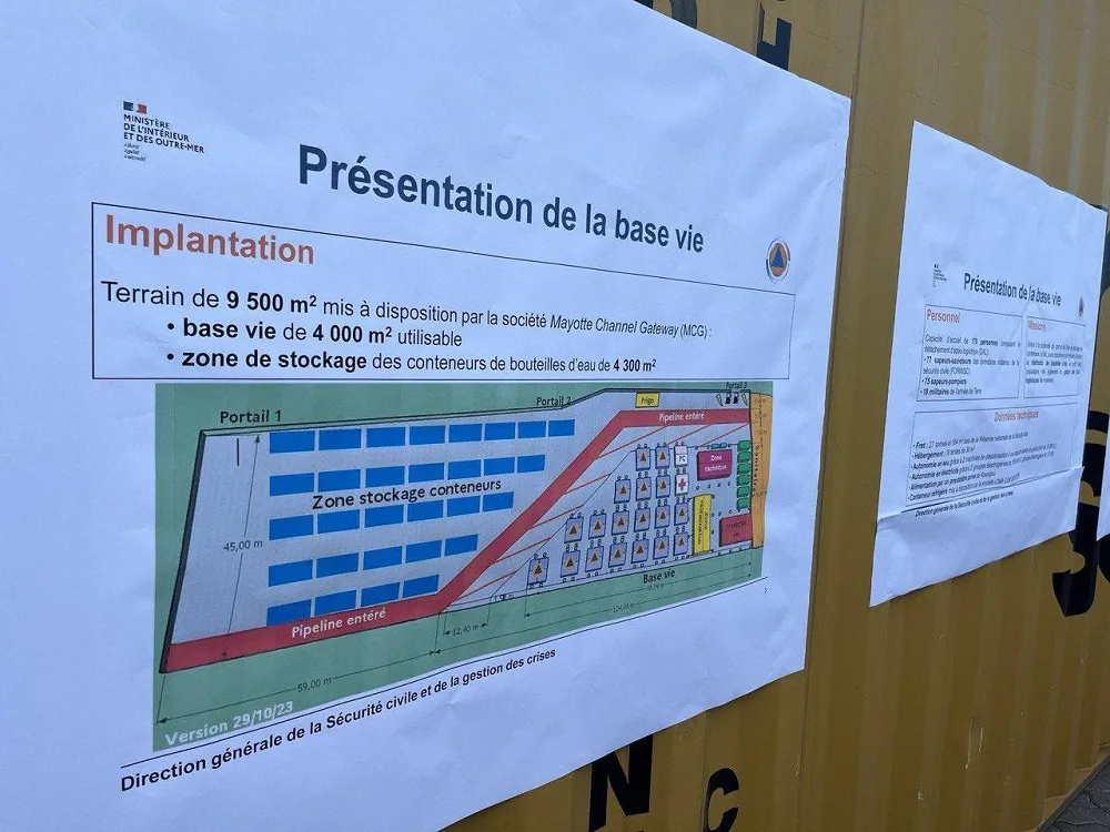 Le ministre délégué chargé des outre-mer, Philippe Vigier, s’est rendu à Mayotte pour présenter la nouvelle base de vie dédiée à la distribution d’eau en bouteille.